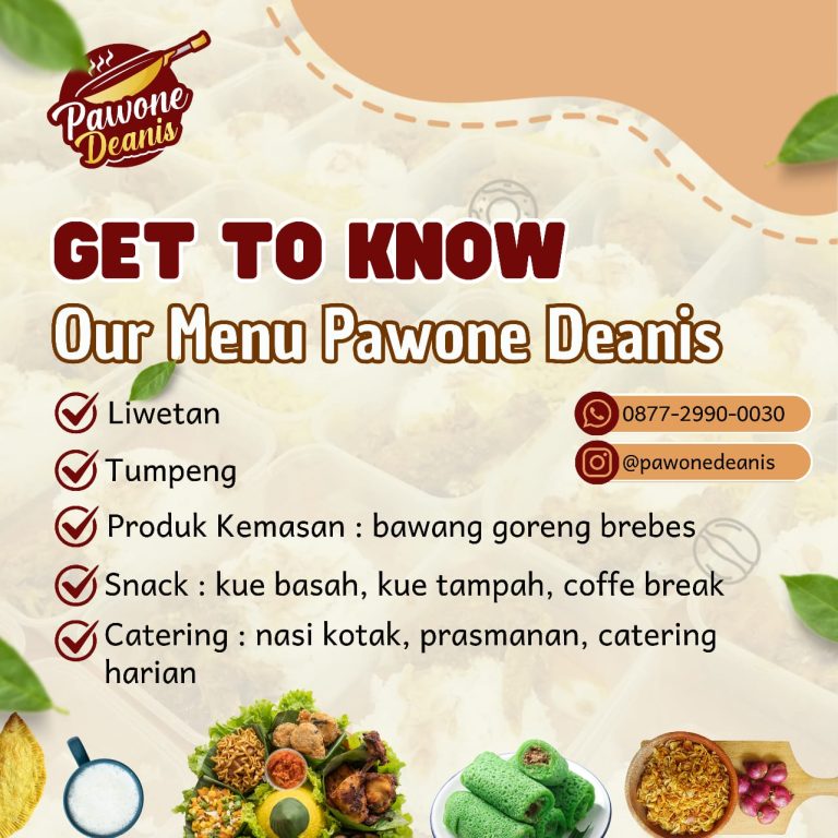Pawone Deanis merupakan bisnis kuliner yang produk bisnisnya berupa makanan rumahan yg dapat dipesan secara dine in atau take away, bisa juga melalui pesanan jumlah besar. Deanis pertama kali hanya menyediakan menu sarapan, setelah berjalan tiga bulan akhirnya membuka gerai di garasi rumah dengan menambah menu. Yg hingga sekarang masih berjalan menu harian untuk makan siang/malam. Selain itu Pawone Deanis menerima pesanan jumlah besar, seperti nasi kotak untuk acara arisan, ulang tahun, rapat, atau lainnya.